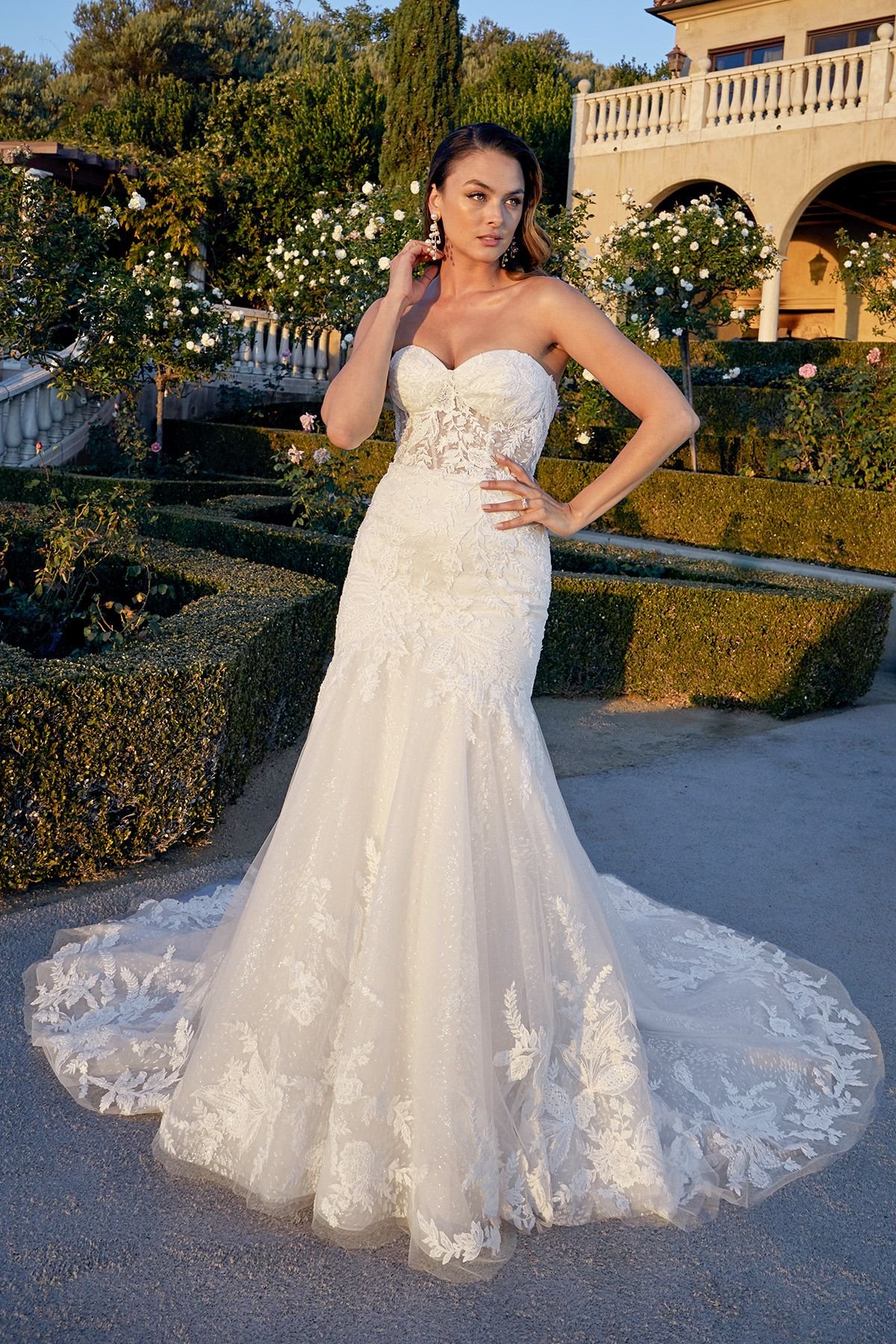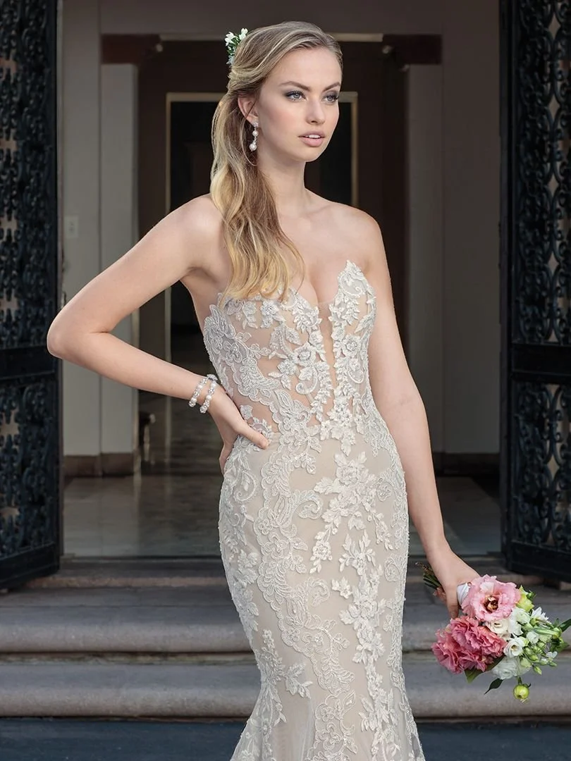 A custom cut is when the gown is made to your exact measurements in production. We offer this option for only $75.00 which may save you hundreds in alterations.