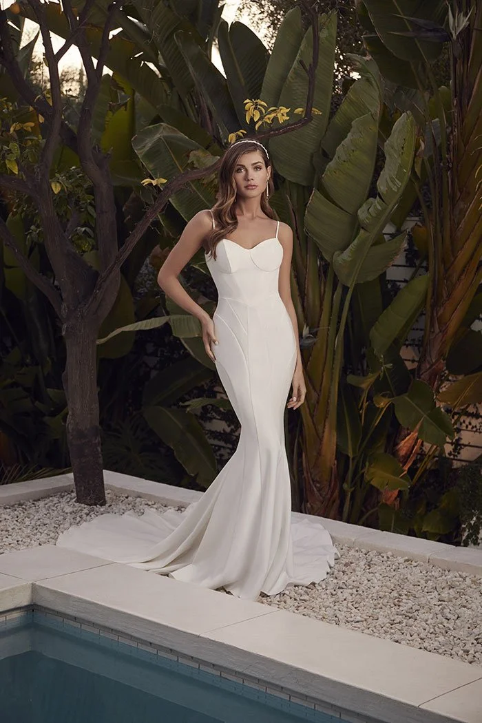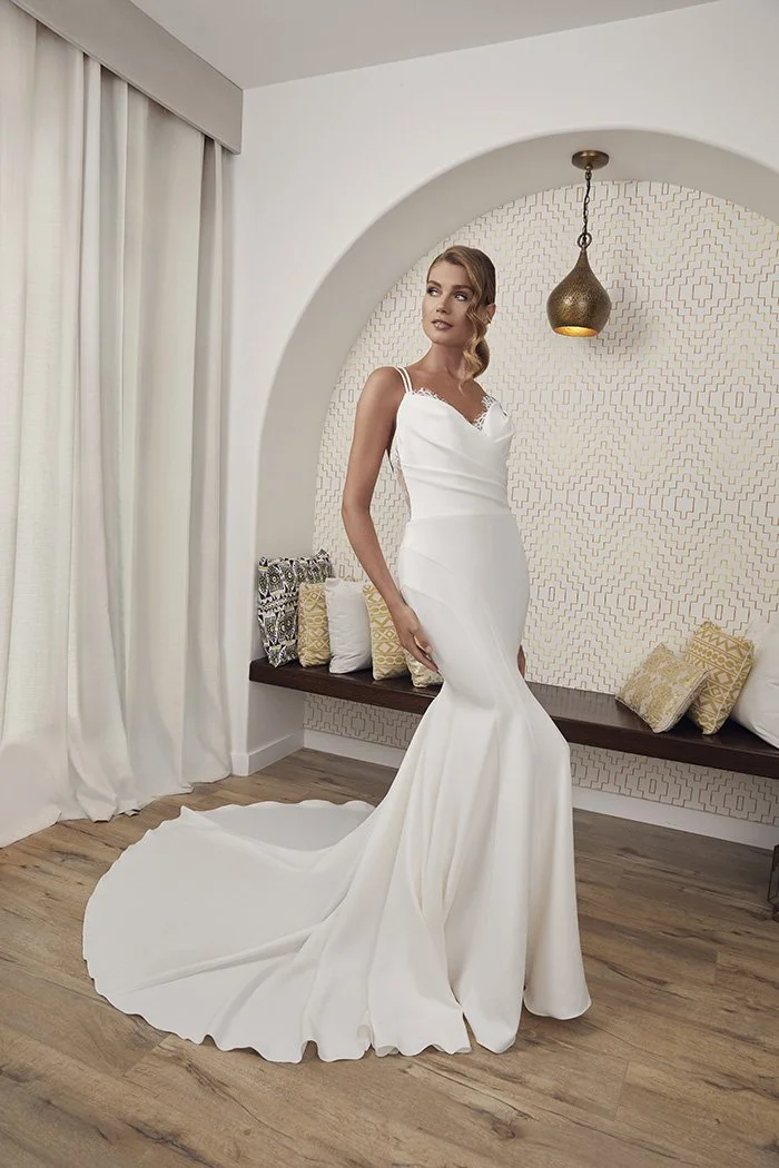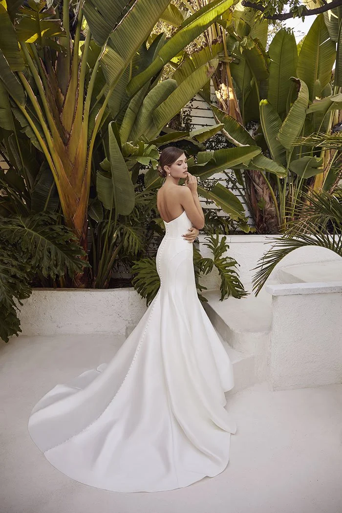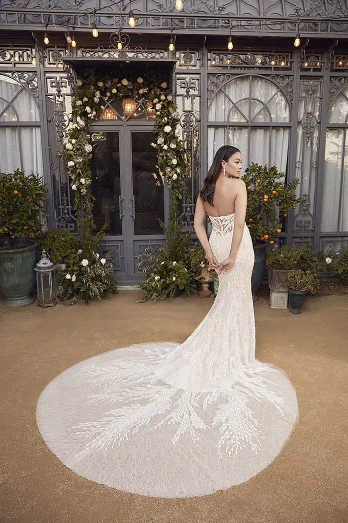 • Most dresses take between 4-6 months to arrive once ordered. Doesn’t fit the timeline before your wedding? Don’t worry, we have a few options; We have a huge “buy it now” selection or we can purchase a rush from the designer and have your gown in as little as 5 weeks.
